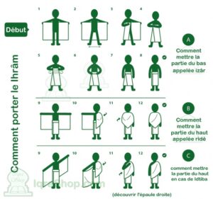• Ihrâm pour le hajj : Tenue pour le pèlerinage 2025 (Hajj) et la Omra (Vêtement en 2 pièces à base de micro fibre dans un sac)