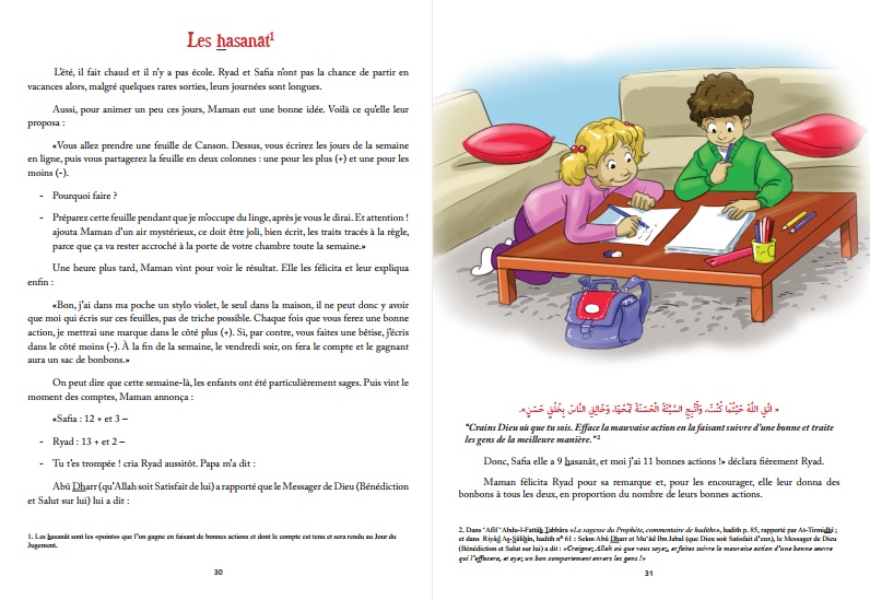 Chaque histoire est illustrée par une très jolie illustration et le hadith est également cité en langue arabe vocalisée avec sa source authentique.