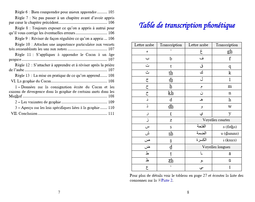 Ce livre très complet dispose de plus d’une cinquantaine de pistes audio à écouter et réécouter afin de mieux comprendre les différentes règles de récitation du Saint Coran. Il constitue un outil d’apprentissage indispensable à celui qui cherche à acquérir une maîtrise suffisante de la science du Tajwîd.