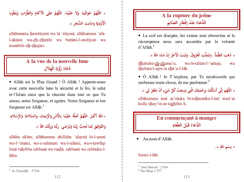 Ce petit livre est une compilation d’invocations (al-Du’â) issues du Coran et de la Sunna Prophétique. Edition bilingue avec la translittération phonétique des invocations pour faciliter leur apprentissage.