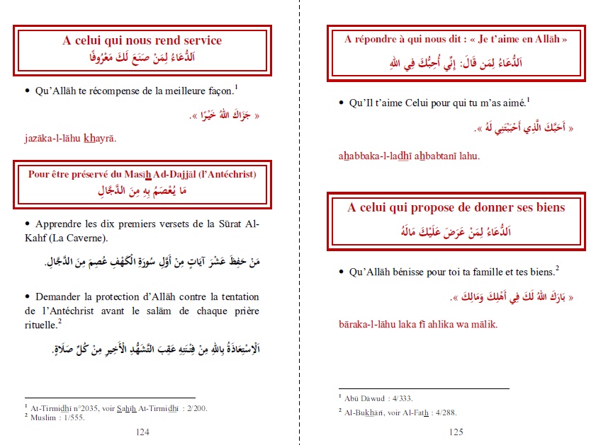 Ce petit livre est une compilation d’invocations (al-Du’â) issues du Coran et de la Sunna Prophétique. Edition bilingue avec la translittération phonétique des invocations pour faciliter leur apprentissage.