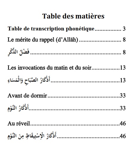 Cet opuscule renferme les invocations à réciter après la prière, extraites de « La Citadelle du Musulman » (Hisnu-l-Muslim) et de « L’Authentique des Rappels » (Sahīh Al-Adhkār). Les invocations ont été regroupées et formulées avec la vocalisation appropriée, en précisant la source de chaque invocation, de même que les vertus de certaines d’entre elles.