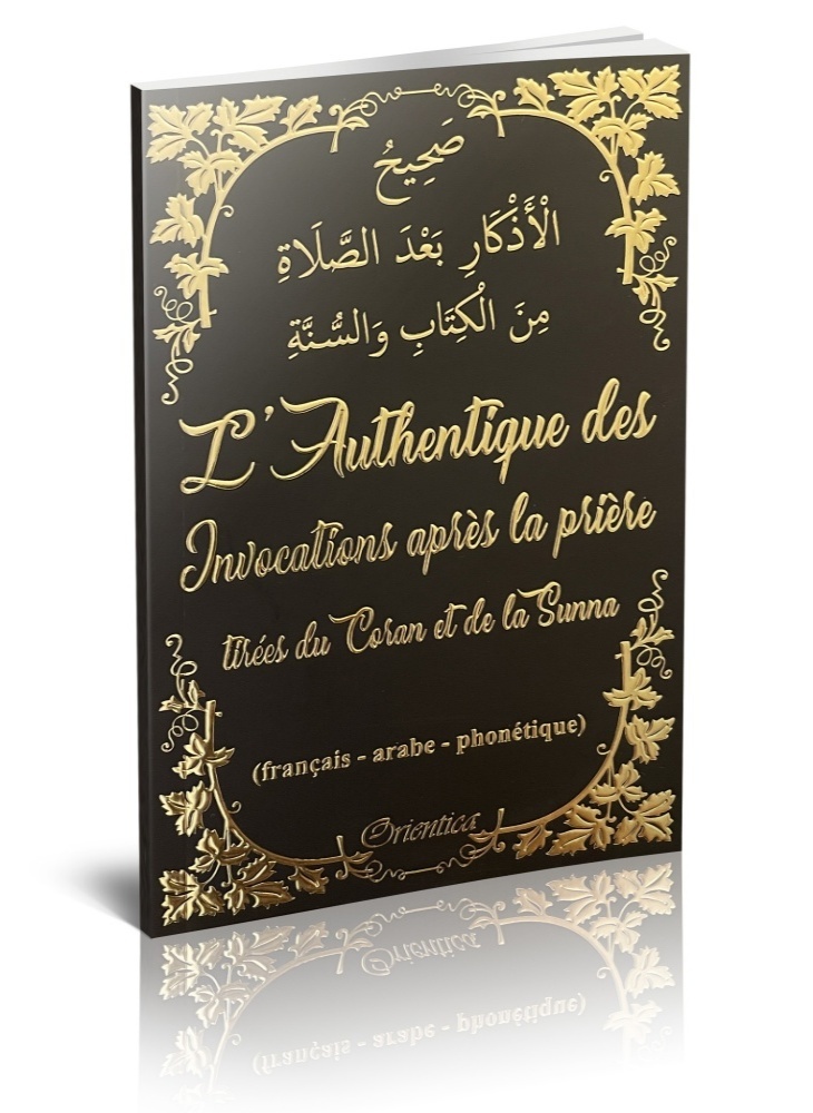L’Authentique des Invocations après la prière tirées du Coran et de la Sunna (Sahîh Al-Adhkâr Ba‘da As-Salât mina-l-Kitâb wa-s-Sunna صَحِيحُ الْأَذْكَارِ بَعْدَ الصَّلَاةِ مِنَ الْكِتَابِ وَالسُّنَّةِ) en français – arabe – phonétique. Couverture noire dorée.