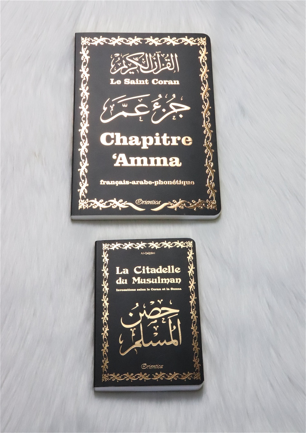Couverture noire dorée avec bords arrondis. Contient Juz’ ‘Ammâ complet (Deux Hizb : Hizb ‘Amma et Hizb Sabbih…)