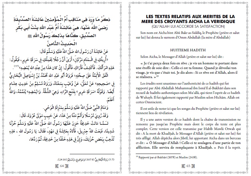 Les épouses du Prophète (SAW), livre du Cheikh Ibn ‘Asakir. Page de gauche en arabe et page de droite en français.