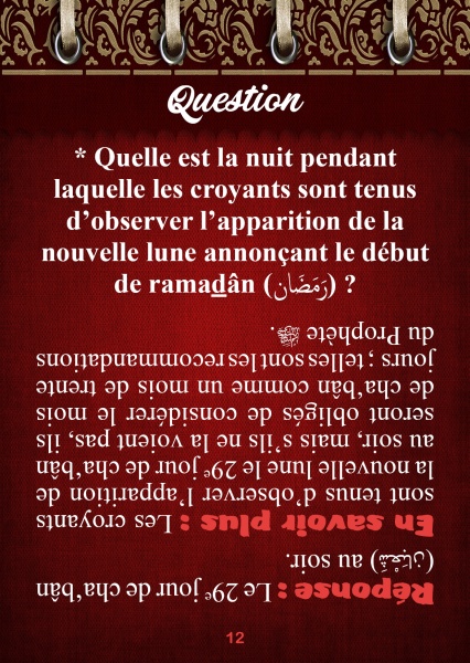 Sources des informations du jeu : Les informations contenues dans ce jeu relatives au jeûne de ramadân et tout ce qui y est relié, de près ou de loin, sont tirées essentiellement du Coran et de la Sunna. La partie « En savoir plus » vous fournit plus de détails ainsi que les preuves puisées dans les sources les plus authentiques. Nous avons utilisé notamment le livre «Le jeûne du Ramadan» des éditions Al-Haramayn, compilé à partir de diverses épîtres (celles des Cheikhs ‘Abdul-‘Azîz Ibn Bâz, Al-Albânî, Al-‘Uthaymîn et ‘Abdur-Razzâq Ibn Badr).