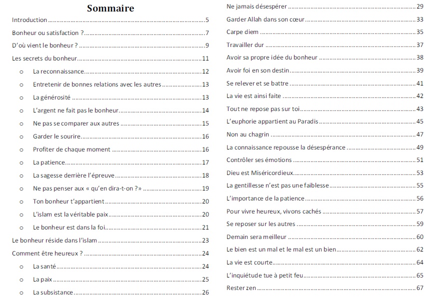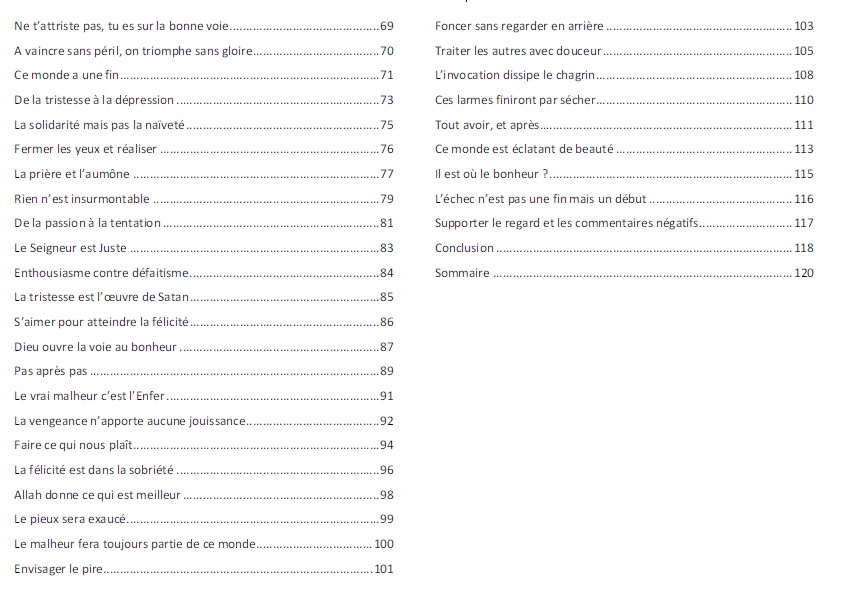 Enfin, pour les personnes qui lisent l’arabe, les versets coraniques ainsi que certains hadiths (et invocations) sont également citées en langue arabe vocalisée.